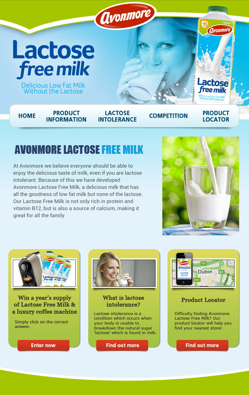 Avonmore, a client of the agency Custodian, were launching a new ‘Lactose Free Milk’ product. They required an informational microsite showcasing the product and providing advice on lactose intolerance.