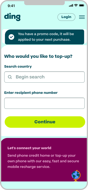 Ding is an international mobile top-up service, allowing people to send phone credit to any number anywhere in the world.